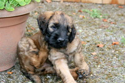 Da, hinter den Ohren: B-axelchen zeigt hier, wo es die meisten Briards „faustdick“ haben.