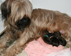 Carreau ist eine ganz liebevolle Mama. Sie betreut die Kleinen geduldig und unermüdlich. Kaum kommt sie mal aus der Kiste hervor.
