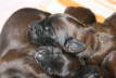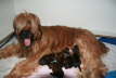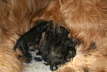 Am Montag zeigte Carreau, drei Tage eher, als erwartet, um die Abendbrotzeit , dass es nun ernst wird. Wir holten rasch noch die letzten Utensilien zur Geburt an die Wurfkiste und in der Hoffnung noch eine Mütze voll Schlaf abzubekommen, ging ich mit Carreau früh schlafen. Immer mit mindestens einem Ohr bei der unruhig hechelnden Hündin, wurde daraus nicht ganz viel. Schlaftrunken gab ich morgens gegen 5.00 Uhr auf, wanderte mit Carreau durch den Garten und nachdem sie ein passendes Plätzchen im Haus (darüber könnte ich eine eigene Geschichte schreiben) gefunden hatte, kam um 8.20 Uhr das erste Fellknäulchen zur Welt. Als weitere Geschwisterchen folgten, keines schwerer als 300 Gramm, zogen wir besorgt den Tierarzt zu Rate, der uns ermunterte: „Wenn Sie es schaffen, die Kleinen bei der Mutter anzulegen, können die das fehlende Ausgangsgewicht sehr schnell aufholen.“