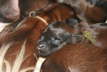 Heute ist es wundervoll zu sehen, wie fit und stabil die kleine Meute inzwischen ist. Sie haben schöne kugelrunde Bäuche bekommen, ein glänzendes Fellchen, fühlen sich wunderbar warm und rund an. Sie streben mit derart lauten Unmutsbekundungen, die man diesen kleinen Wesen niemals zutrauen würde, zu Mamas Milchbar. Bei Hunger kennen die nix, saugen sich energisch an einer freien Zitze an und lassen nicht mehr los. Da können Geschwister unter oder über sie hinweg robben, das macht ihnen nichts mehr aus, das kleine Mäulchen hält die noch im Verhältnis sehr große Zitze der Mutter fest umschlossen, gibt sie um keinen Preis wieder her.
