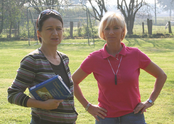 In einem kleinen Parcours, ähnlich denen, die bei Verhaltenstesten aufgebaut werden, haben sich dann unsere Mensch-Hund-Gespanne praktisch erprobt. Wie verhält sich der eigene Hund in der Begegnung mit ungewöhnlichen Gegenständen, Menschen und Geräuschen? Das ließ jeweils Rückschlüsse auf die Umweltgewöhnung, Sozialisation und Halterbindung des Hundes zu. Hier konnte jeder selbst testen, wie weit seine bisherigen Erziehungsbemühungen gediehen sind. Es offenbarten sich Stärken und Schwächen, die bei der weiteren Ausbildung unbedingt berücksichtigt werden sollten.