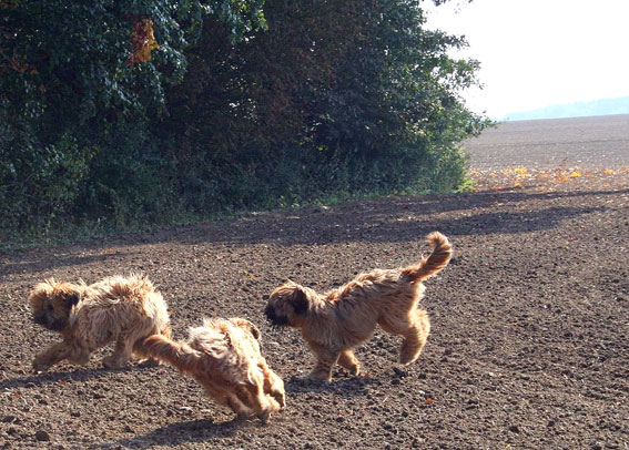 Nach der Sommerpause staunten wir nicht schlecht: Wie groß Alf, Avan, Carlos, Anuk, Aiko, Anou und Abby geworden sind! Und welche Energiebündel da tobten... Mit typisch jung-hundlichen Elan ging es in wilder Jagd über die große Wiese. Manch einer schoss im Eifer des Gefechts grummelnd etwas über das „Spiel“ hinaus und musste mal zur Ordnung gerufen werden. Leider fehlte Diego, unser Waldmeister, der laut Junghundbeurteilung einmal ein echter Löwe unter den Briards werden soll, für den kompletten Größenvergleich. Diego ist schließlich in dieser Disziplin für unsere Spitzenergebnisse bekannt. Inmitten der Briardmeute ist Mama Carreau jetzt kaum noch auszumachen. Die Jungs sind ihr längst über den Kopf gewachsen, die Mädels zogen fast gleich auf.