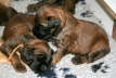 Sie sind jetzt kaum noch wieder zu erkennen unsere Kleinen. Es kommt Leben in die Kiste, sie interessieren sich für ihre Geschwister, testen mal, wie die denn schmecken, fordern mit Pfötchen und Mäulchen erste Reaktionen heraus. Dabei probierte unsere „Tine“ als erste ein Wuff –klingt drollig in ihrer hohen Babystimmlage, während der kleine Rüde „B-axel“ schon mal trainiert, was später ein Knurren werden soll.