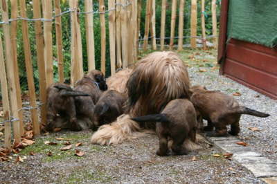 Im Mittelpunkt: alles dreht sich um Briard-Mama Carreau.