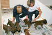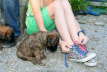 Als eines Tages unsere Tochter aus der Schule kam, stellte sie erschrocken fest, dass zwei Mädels beim Toben ihre Farb-Kennzeichnungsbändchen verloren hatten. Wer war nun Tine, mit dem orangen Band und wer Rosi, mit dem rosa Band? Ich kenne die Welpen inzwischen so gut, dass ich sie auch ohne ihr Bändchen auseinander halten kann. Sie haben vermutlich auch eine Idee, wie die beiden eindeutig auseinander zu halten sind???