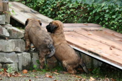 Spielaufforderung: Komm lass uns mal, scheint Rosi (re) zu Blue (li) zu sagen