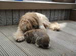wenn wir Hunde- oder Welpenbesuch haben, er ist der perfekte Gastgeber und Babysitter,