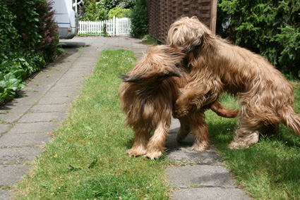 Es ist soweit: der B-Wurf hat das Licht der Welt erblickt. Vater ist Extasy “Axel”, der uns insbesondere durch sein sehr schönes Ergebnis im Verhaltenstest für sich eingenommen hat. Wie schon beim A-Wurf haben wir bei der Auswahl des Rüden erneut besonderen Wert auf Charaktereigenschaften wie gutes Sozialverhalten, ein freundliches, sicheres Wesen, Umgänglichkeit und mittleres Temperament gelegt. Denn wir möchten gesunde, lebensfrohe, möglichst leichtführige und ausgeglichene Briards züchten, die den vielfältigen Ansprüchen an unsere heutigen Familienhunde gerecht werden können.
