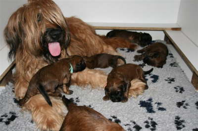 Einblick in die Wurfkiste: Liebevoll kümmert sich die Mama um die Welpenbande