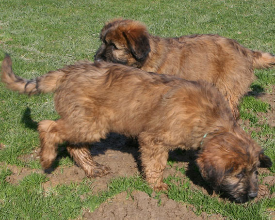 09.06.2008 “Mein Dreckschweinchen vergräbt übrigens seine Kauknochen – wobei die Verstecke noch nicht wirklich gelungen sind – mitten in den Blumenbeeten…. Aber sie ist dann super schwer beschäftigt. Erst mit dem Verstecken und dann mit dem doch Wiederholen… Nachdem Gianna ihr das trüffelschweinmäßige Absuchen unserer Wiese nach Hasenkötteln beigebracht hat, haben wir zwei tolle Spürhunde zu Hause. Das Reh mitten im Garten haben sie allerdings beide übersehen. Was ich prinzipiell nicht so schlecht finde…”