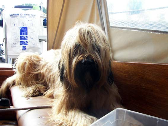 Awan hat sich super in seine Familie integriert, das schreibt Herrchen. Die Fotos aus dem Sommerurlaub (2009) zeigen, dass der hübsche Kerl außerdem segel-, bus- und taxitauglich ist.