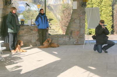 Prüfung: Heike mit Bennet, Kerstin mit Ivy und Michael an der Kamera schauen zu, während Toni schon beurteilt wird.
