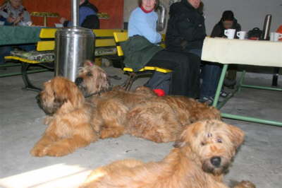 Kaffee und Aufwärmpäuschen: Im Knäul liegen Carreau, Bonaly und Bennet beieinander, Ivy blickt in die Kamera.