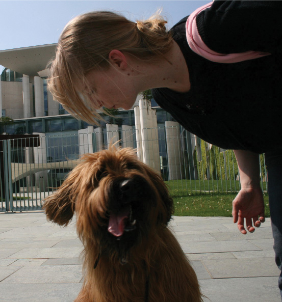 Was am besten funktioniert, ist der lange Stopp-Pfiff (auch als Ssssss mit dem Mund, wir können ja nicht gescheit pfeiffen), aber das ist ja wohl bei den anderen auch der Fall. Was schulmäßig noch nicht erreicht wurde ist das enge „Bei Fuß“. Vielleicht kannst Du uns eine Adresse für ein Gebrauchshunde-Prüfungs-Training empfehlen.