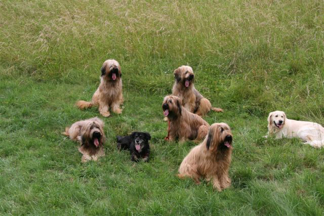 Schließlich musste sie nach dem Rechten sehen, als nach und nach Alf und Carlos (Andiamo), zwei Rüden aus unserem A-Wurf, Briardrüde Linus, Briardhündin Chiara, Golden Retriever Varus und Balu, eine Hütehundmix-Hündin, mit deren Zweibeinern eintrafen zum Wandern.