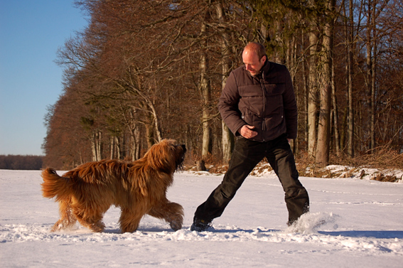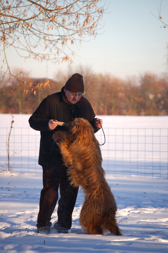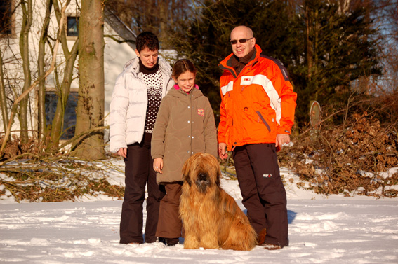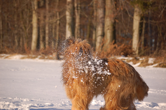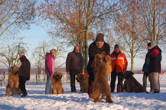 Strahlender Sonnenschein und eine weiß gepuderte Landschaft sorgten für ein tolles Ambiente zum Geburtstagsfest unserer acht Briards aus dem A-Wurf. Wie viel Spaß Mensch und Tier in der Winterpracht hatten, das haben wir in vielen Bildern eingefangen.....
