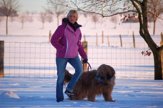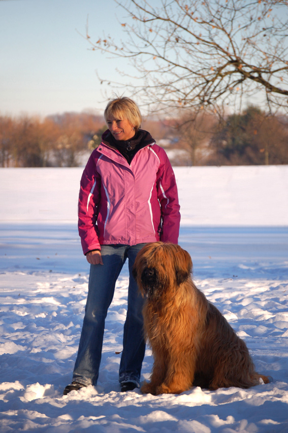 Elke Vossen, Carreau´s Züchterin war dies mal zu Gast. Sie ist seit 15 Jahren Hundetrainerin und züchtet seit 2001 die Briards "von der Vorster Rotte" - inzwischen in der dritten Generation. Allein aus ihrem C-Wurf erlangten der Rüde Cyro, sowie die Schwestern, Cuba, Calista und Carreau eine Zuchtzulassung. In Kürze plant die Vorster Rotte ihren F-Wurf.